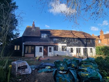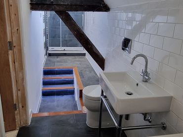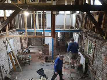 This project was a 1800's barn that had been poorly converted in the 1950's, it was found to be structurally un stable, we removed everything from the inside of the building and built a steel frame to structural engineers design and calculations, we then re built the interior to the customers high end specification, whilst upgrading all aspects of the project to current building regulations, the finnish included a new heating system with underfloor heating, natural stone flooring, high end kitchen and bathroom, anthracite upvc windows and doors, all outside aspects re clad in new timber.