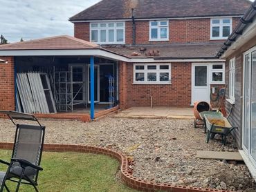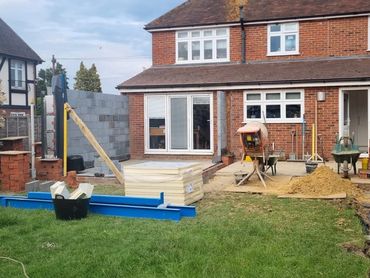 This project was a large extension and refurbishment of a property in wokingham, we took down a large conservatory and built a steel and masonry framed extension with 3 bi-folding doors a large picture window and flat roof light, we converted the double garage into a large childrens play room, refurbished the bathrooms to a very high standard, fitted a new heating system, refurbished the staircase and layed new flooring throughout, we also built a 3 car garage and carried out the landscaping including, decking, pergola, paving a pond and new driveway